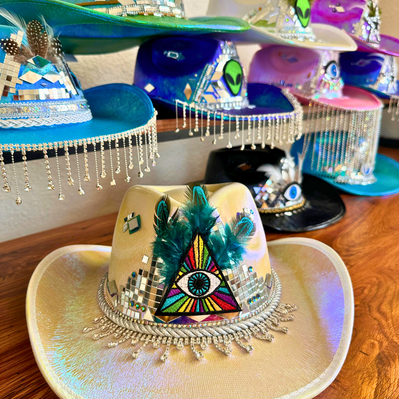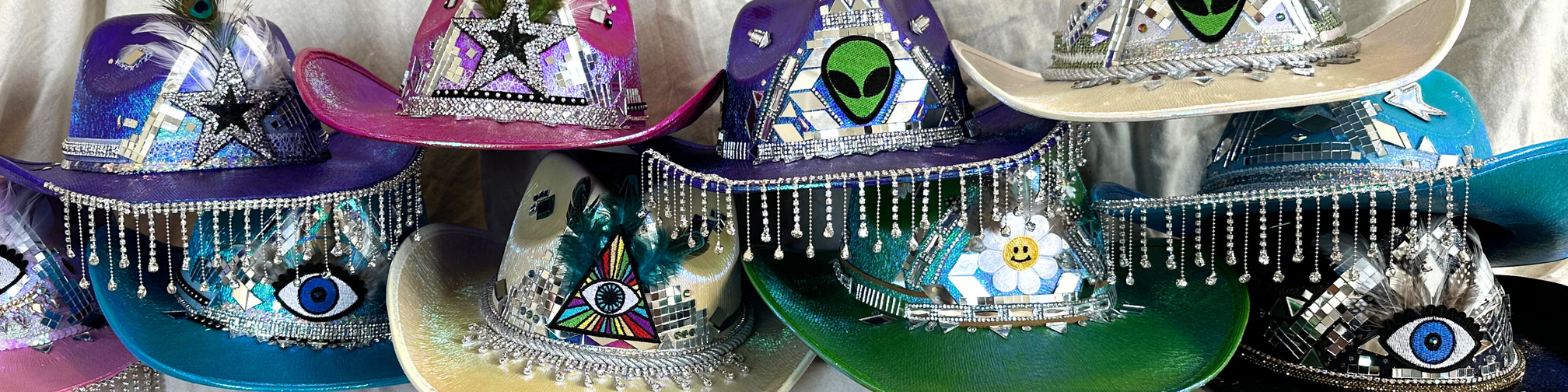 crafter based in beautiful San Francisco. I love hand-decorating hats to top off your fav party 'fit. From festivals & raves to big nights out, my hats will keep the good vibes going.
